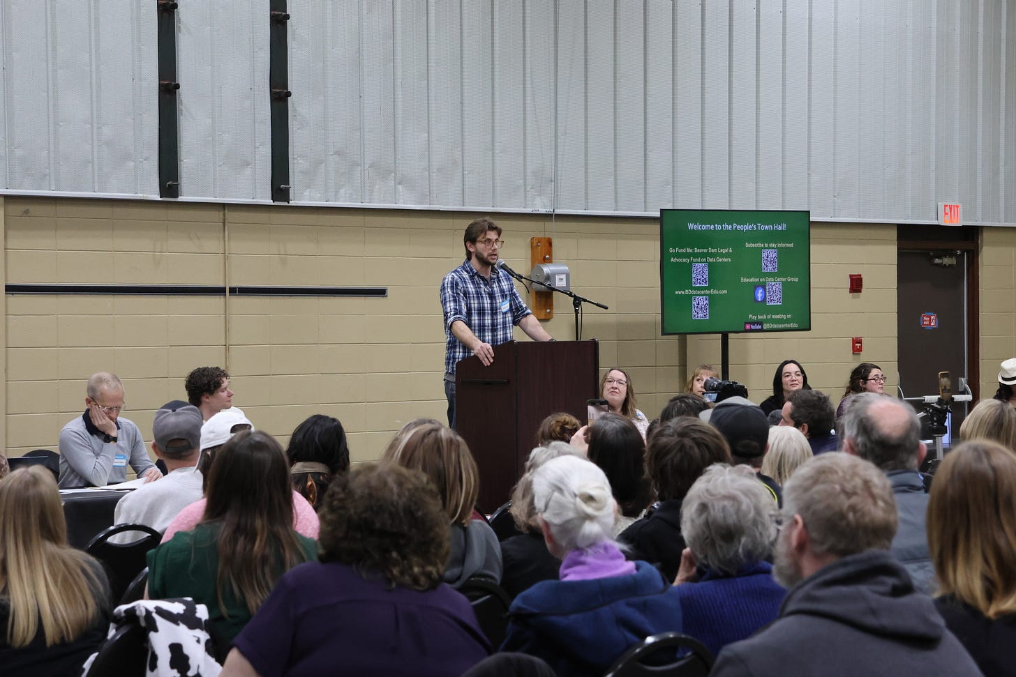 I was in the area for a town hall on data centers, where —by my count— hundreds showed up at a community center in the nearby city of Juneau.