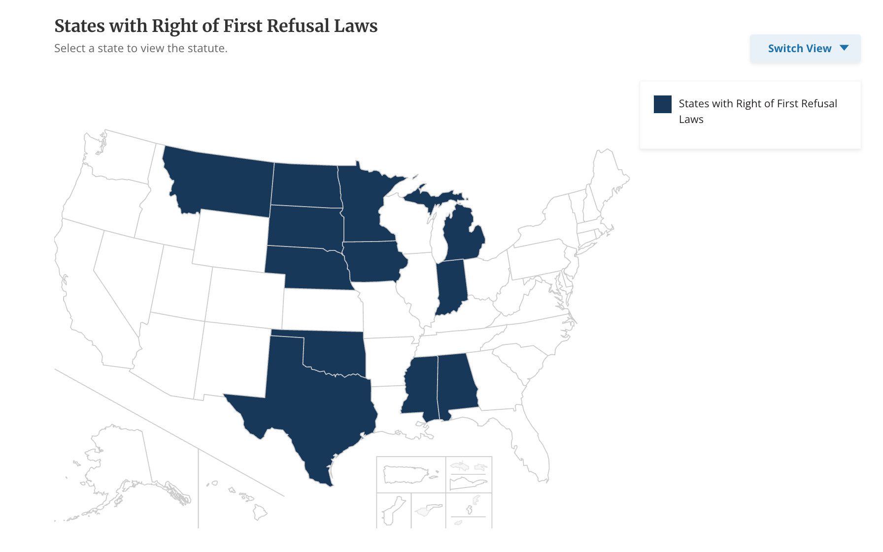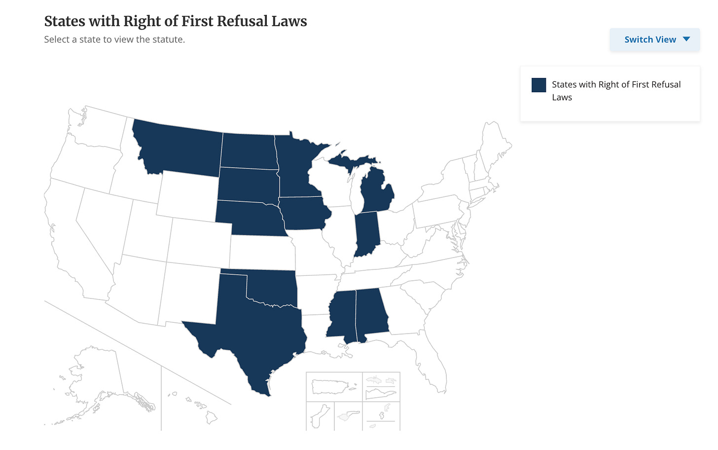 A map of states with Right of First Refusal laws, from the National Conference on State Legislatures.