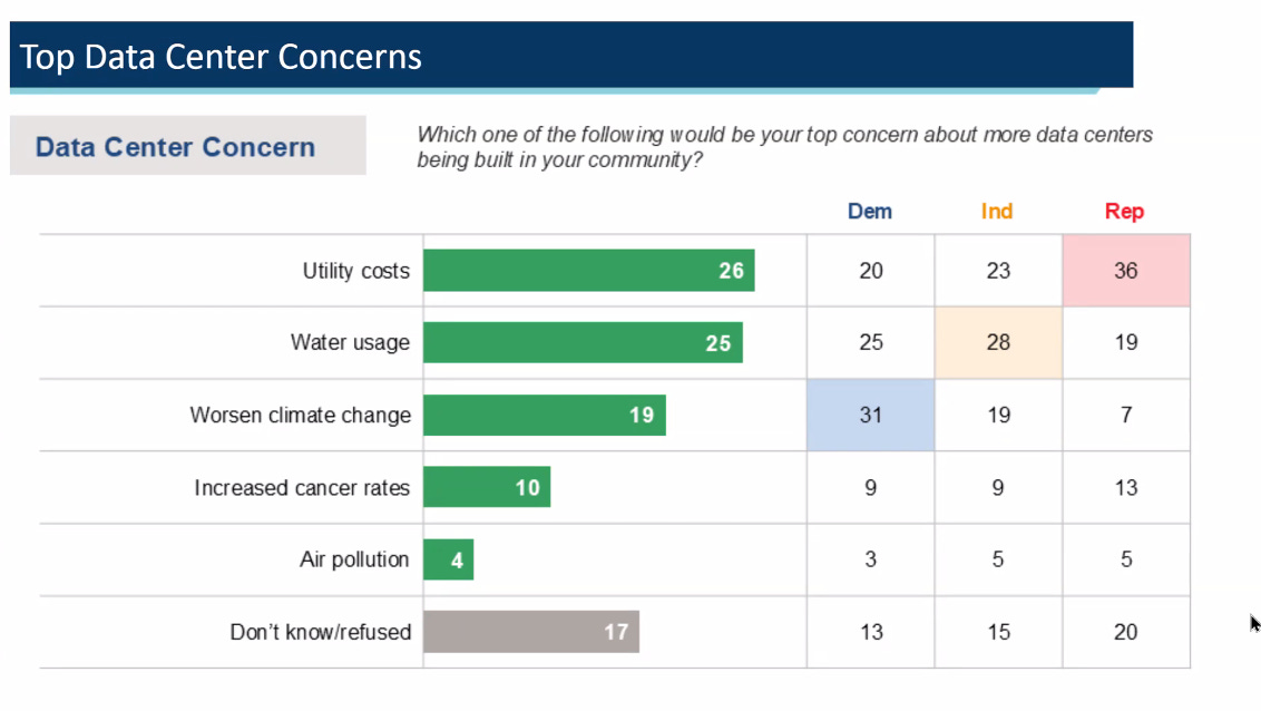 The most potent angle of opposition, according to the same polling from Wisconsin Conservation Voters, is that data centers should pay their full share to power these facilities.