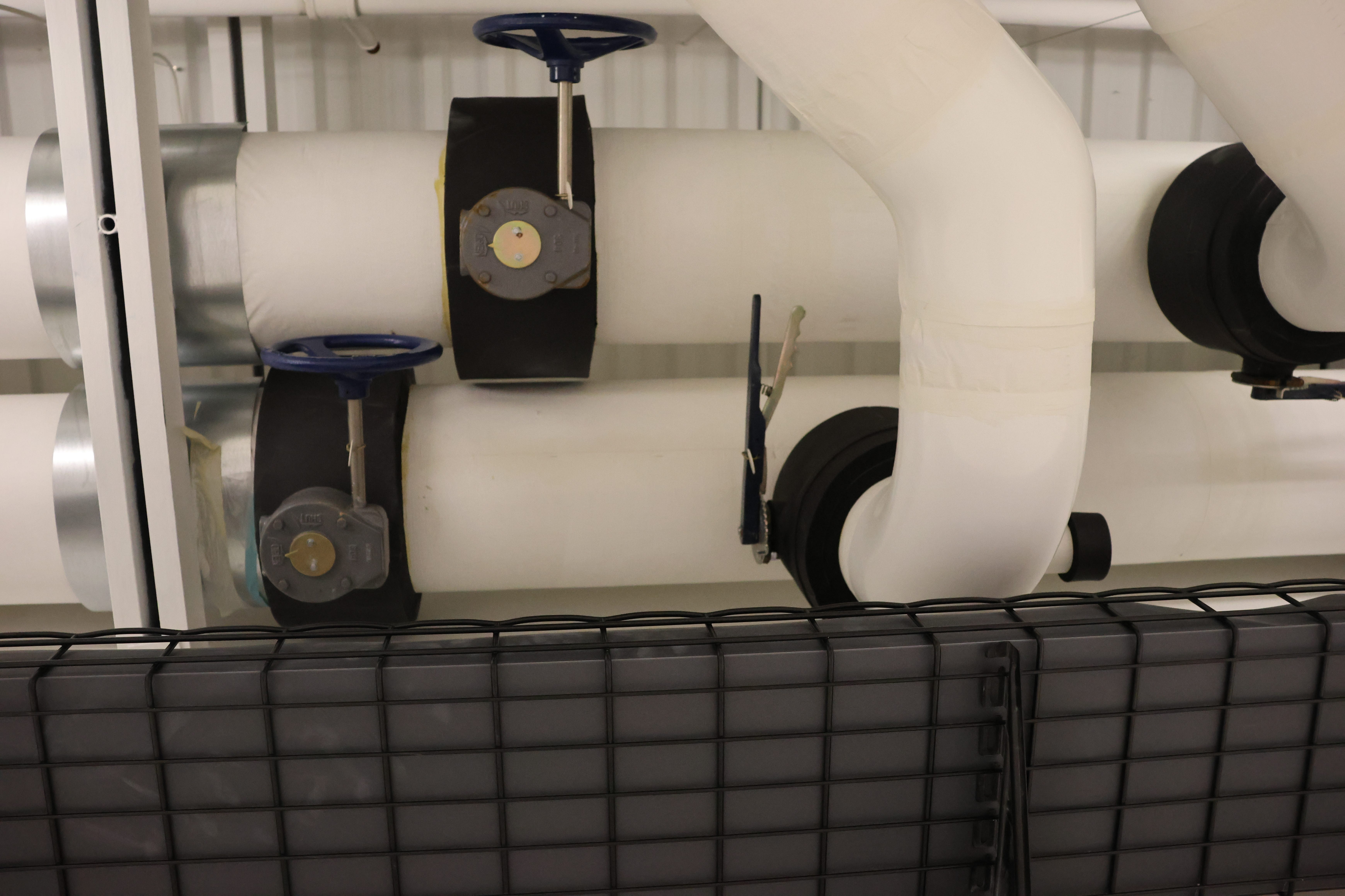 Inside the white pipes is a mixture of water and glycol — a foodsafe, nontoxic version of antifreeze. When there’s a leak, the mixture is reclaimed and put back in to circulation.