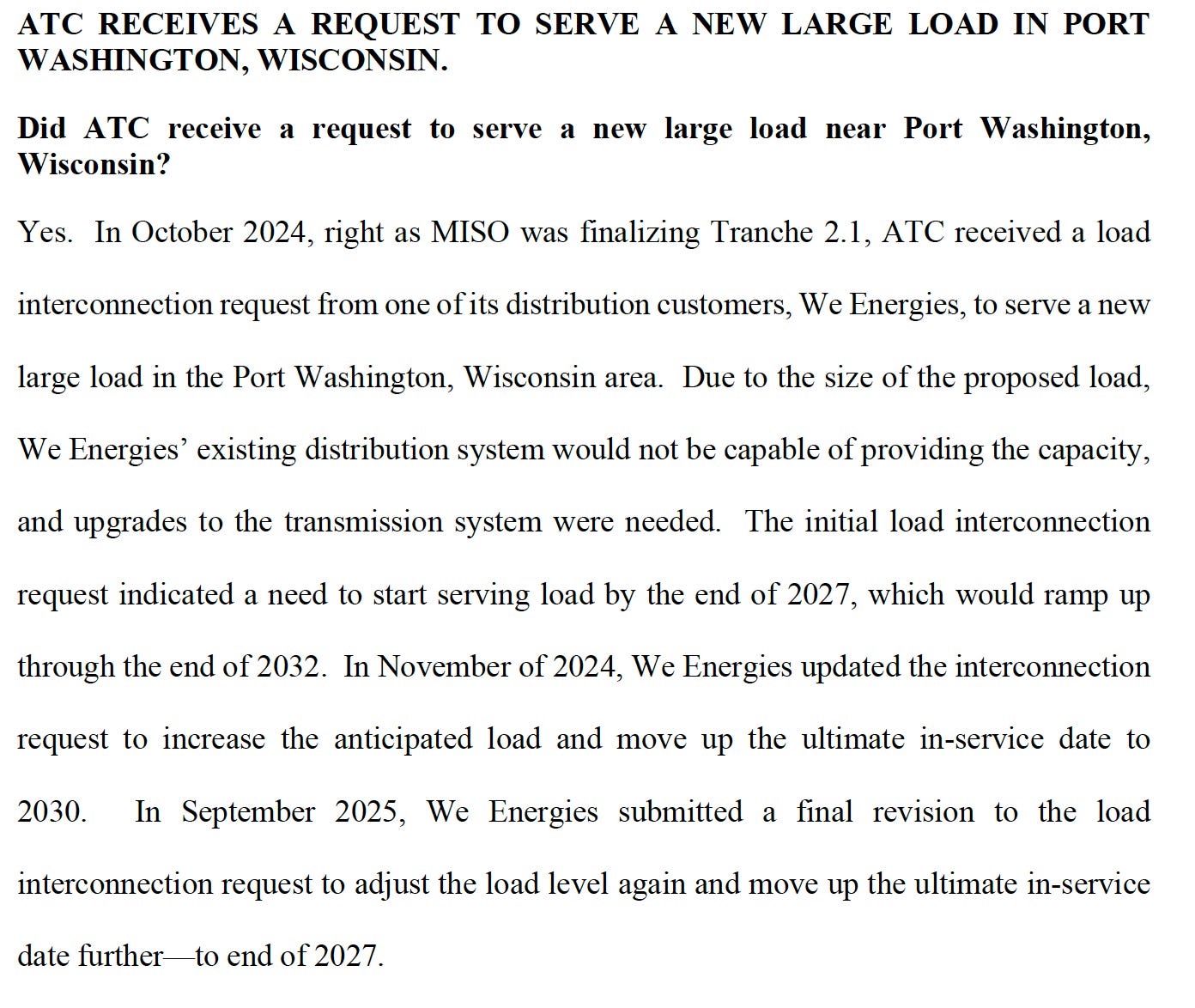If you read associated testimony from Robert J. McKee, Director of Interconnection Solutions for ATC Management Inc, the corporate manager of American Transmission Company LLC, , you’ll come across this nugget: