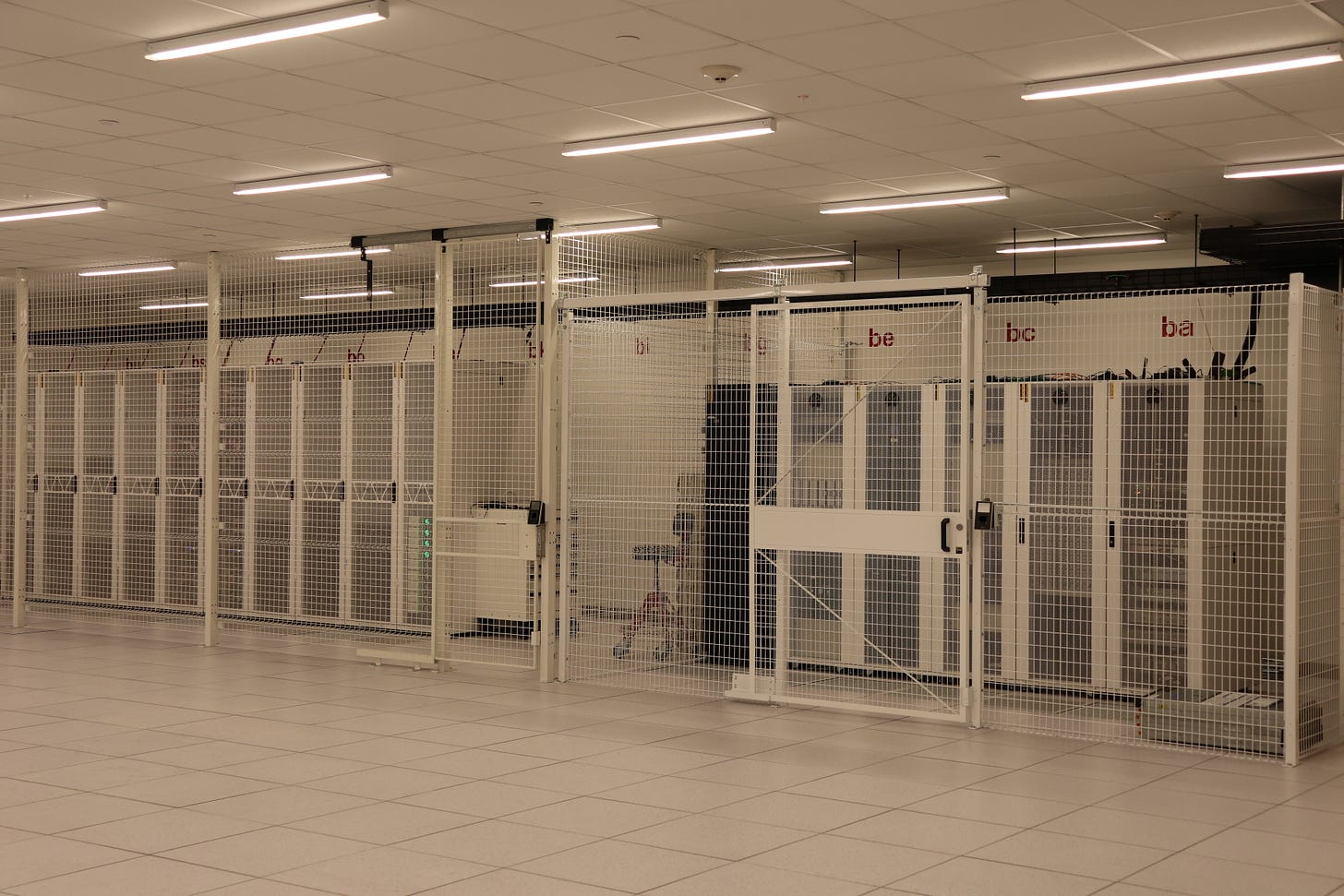 In the server rooms, it’s a clean, crisp white. The data servers sit above three ft. raised floors that carry chilled air and power. The cool regulated airflow blows my skirt up. The ceilings are outfitted with air sensors that can pinpoint smoldering hours before a fire breaks out. They’ll send an alert, down to the exact floor tile.
